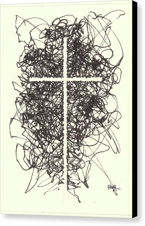 Chaos Order Cross 07 - Black and White - Canvas Print