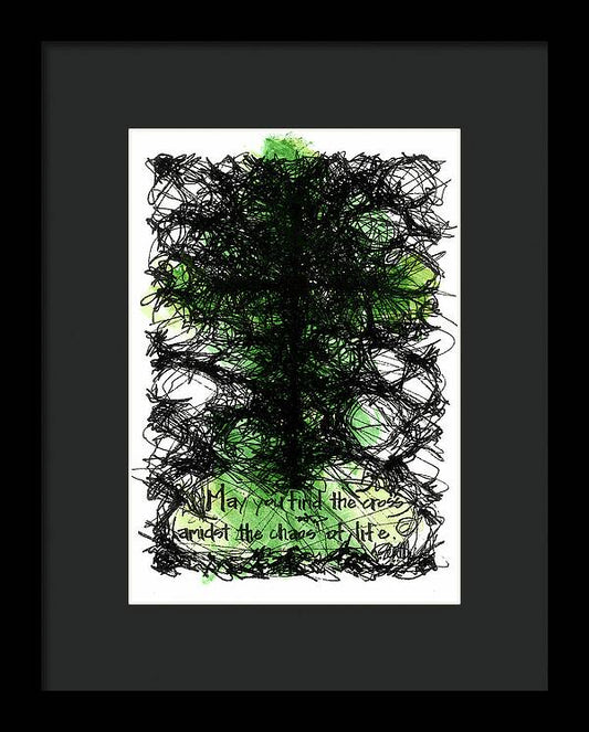 Chaos Order Cross 08 - Joyful Green - Framed Print