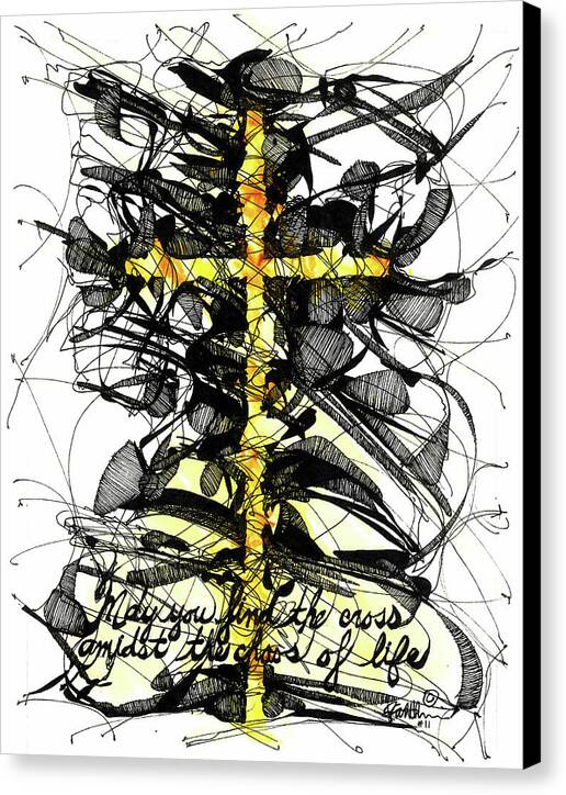 Chaos Order Cross 11 - Luminous Yellow - Canvas Print