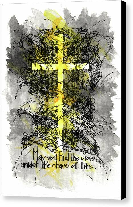 Chaos Order Cross 13 - Luminous Yellow - Canvas Print