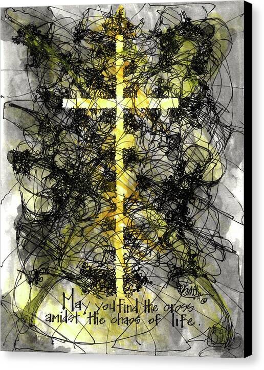 Chaos Order Cross 14 - Luminous Yellow - Canvas Print