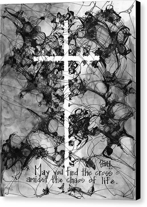 Chaos Order Cross 15 - Black and White - Canvas Print