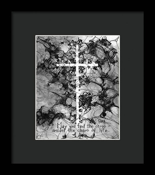 Chaos Order Cross 15 - Black and White - Framed Print