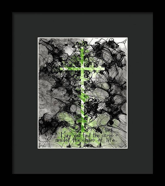 Chaos Order Cross 15 - Joyful Green - Framed Print