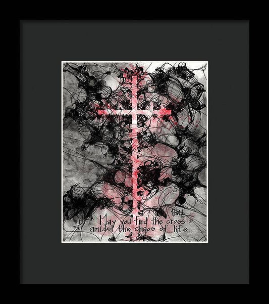 Chaos Order Cross 15 - Sorrowful Red - Framed Print