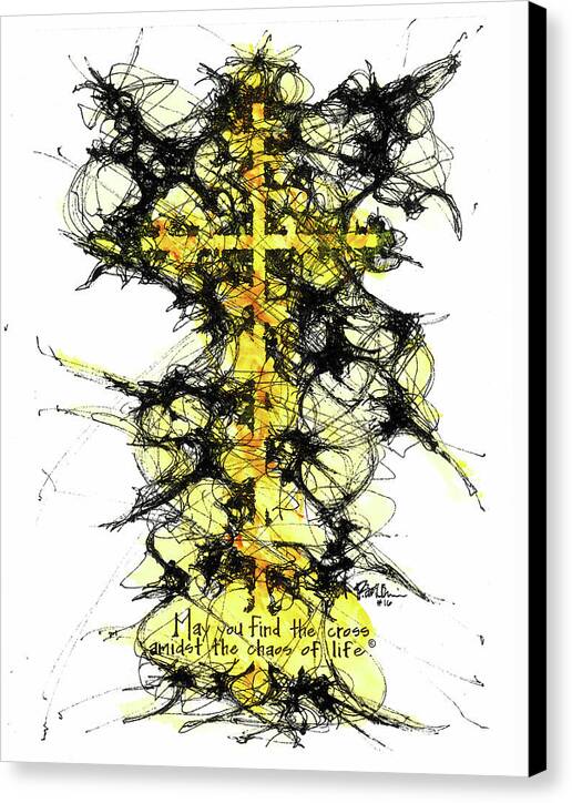 Chaos Order Cross 16 - Luminous Yellow - Canvas Print