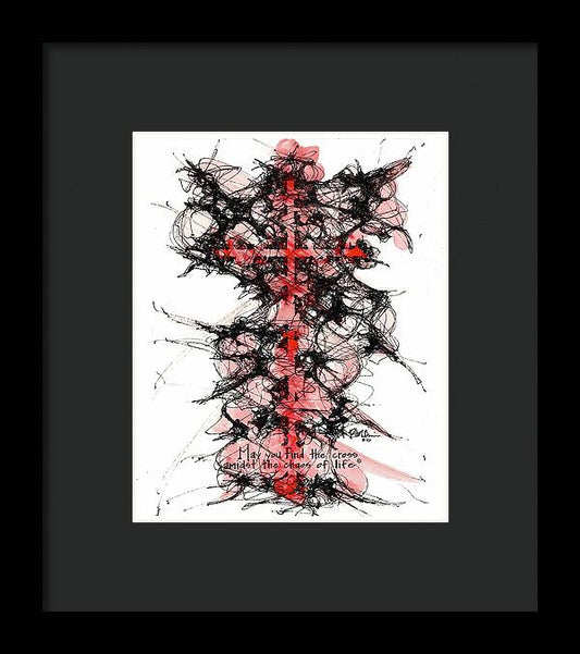 Chaos Order Cross 16 - Sorrowful Red - Framed Print