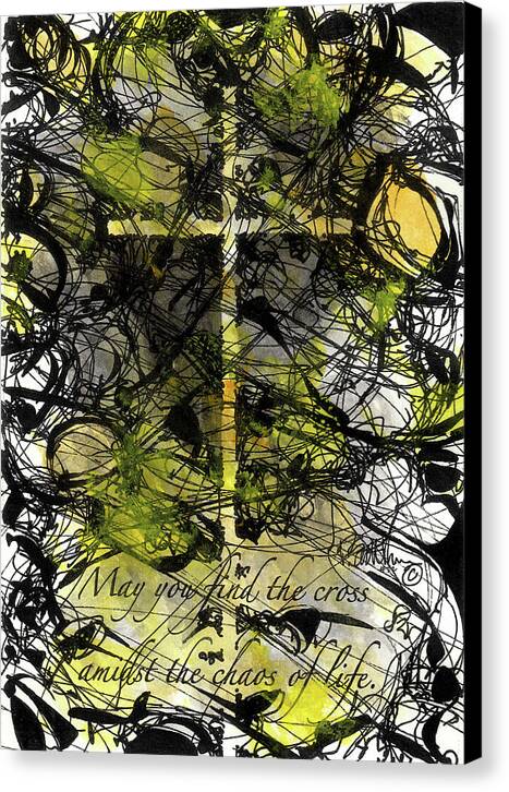 Chaos Order Cross 22 - Luminous Yellow - Canvas Print