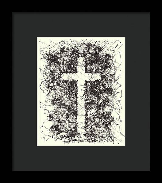 Chaos Order Cross 09 - Black and White - Framed Print