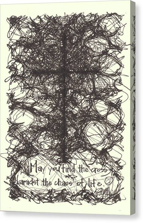 This intricate black-and-white cross artwork, accompanied by the message "May you find the cross amidst the chaos of life," captures the essence of grounding faith in the midst of disorder. The stark black ink lines evoke the unpredictability of life, while the cross emerges as a steady presence, symbolizing peace, love, and spiritual guidance. The accompanying message amplifies its theme of gratitude and centering oneself through faith. Displaying this piece inspires moments of reflection and calm, offering a profound statement in your home or space.