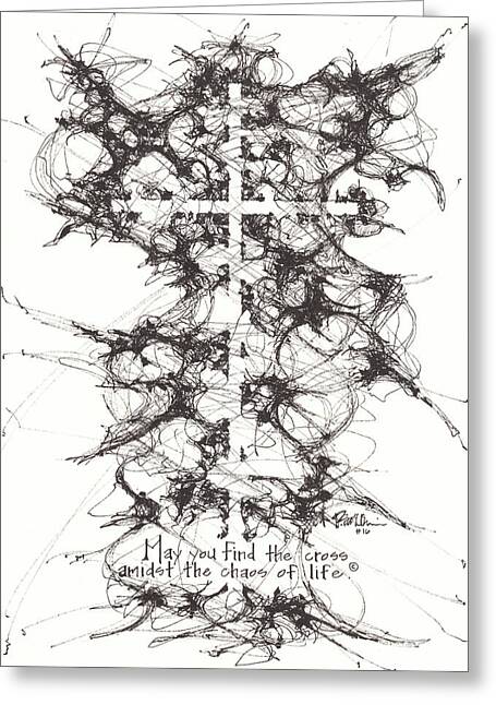 Chaos Order Cross 16 - Black and White - Greeting Card