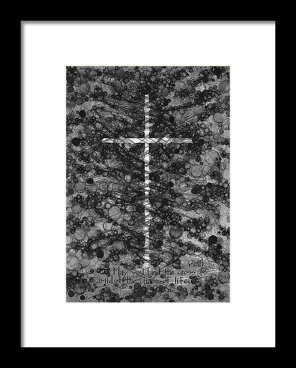 This intricate black and white cross artwork, paired with the message "May you find the cross amidst the chaos of life," uniquely features spheres that represent the ever-shifting yet interconnected elements of life’s challenges. The stark black ink lines and dynamic watercolor patterns weave through the spheres, symbolizing both turbulence and unity. The cross stands as a steady, calming beacon of faith amidst the chaos, inviting moments of reflection and spiritual renewal, bringing a sense of balance and order to any space.